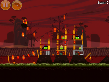 angry birds into structures occupied by egg-stealing pigs. The goal is